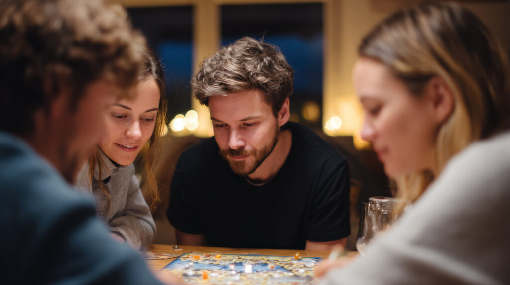 Bij Waanzinnig Verhuur geloven we dat sterke teams ontstaan door samen te spelen. Daarom bieden wij volledig begeleide teambuildingsessies met een uitgebreide collectie gezelschapsspellen – van strategische breinbrekers tot absurde partygames.
